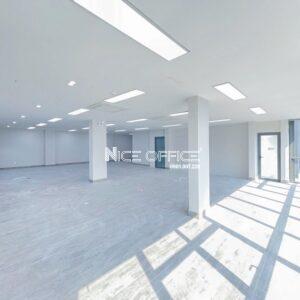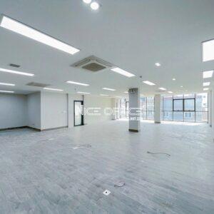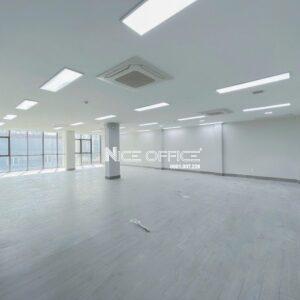 Các cửa kính lớn xung quanh giúp không gian tràn ngập ánh sáng tự nhiên, tạo sự thông thoáng và tiết kiệm năng lượng. Tường và cột sơn trắng sáng, kết hợp với bố trí đơn giản, dễ dàng tùy biến để phù hợp với nhu cầu của các doanh nghiệp. Ngoài ra, tòa nhà còn được trang bị hệ thống điều hòa âm trần hiện đại, đảm bảo môi trường làm việc thoải mái. Không gian mở rộng rãi, dễ dàng phân chia thành các khu vực làm việc hoặc phòng họp linh hoạt theo nhu cầu.