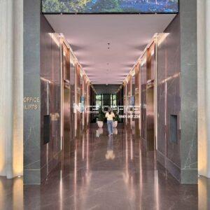 Đơn cử có thể kể đến hệ thống 8 thang máy và 1 thang hàng tải trọng lên đến 1.600kg nhập khẩu từ Mỹ, được giám sát bởi hệ thống an ninh sử dụng thẻ từ. Ngoài ra còn có, 3 hầm giữ xe với sức chứa khổng lồ, hệ thống PCCC đạt tiêu chuẩn an toàn tối đa theo thang điểm quốc tế.
